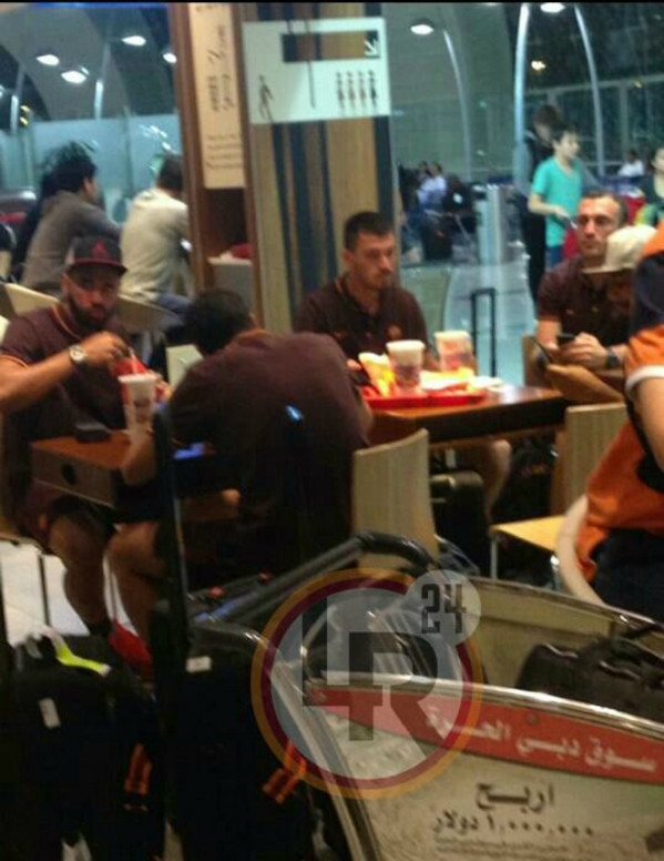 La Roma è partita oggi verso l'Australia per la tournèe che la vedrà protagonista, insieme a Real Madrid e Manchester City, dell'International Champions Cup. Il gruppo di Rudi Garcia ha effettuato uno scalo a Dubai, come testimonia questo scatto raccolto dalla nostra redazione, dove si è concessa un breve break prima di imbarcarsi nuovamente in direzione Melbourne.