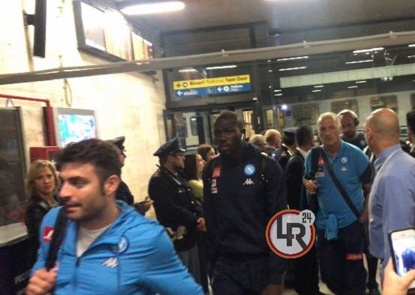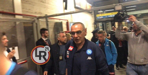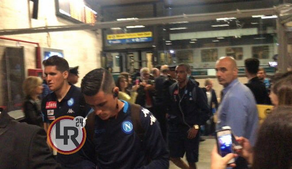 DALLA STAZIONE TERMINI EMANUELE ZOTTI - Il Napoli è a Roma. Gli azzurri, arrivati con il Frecciarossa 9584 delle 19.19, partito dal capoluogo campano, hanno raggiunto la capitale in treno in vista del big match di domani sera alle 20.45 allo Stadio Olimpico contro la Roma. Buone notizie per mister Sarri che nella sfida di domani potrà contare su quasi tutti i giocatori a disposizione: gli unici indisponibili infatti sono Milik e Tonelli.