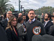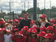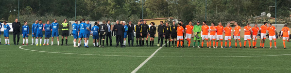 11.30 - La delegazione si sposta sul campo di gioco dove è predisposto un maxi striscione con la scritta "Siamo tutti Sara".