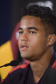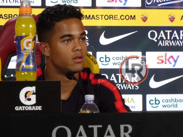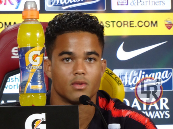 DA TRIGORIA EMANUELE ZOTTI - Altra conferenza di presentazione in casa Roma. Questa volta è il turno di Justin Kluivert, arrivato in giallorosso dall'Ajax per circa 17 milioni, e accolto a Fiumicino da moltissimi tifosi. L'olandese parla per la prima volta da giallorosso, queste le sue sensazioni dopo pochi giorni dall'inizio della sua avventura romanista:
