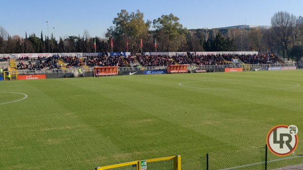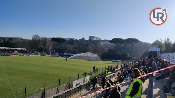 14.35 - Il Tre Fontane è già gremito di tifosi giallorossi in attesa che la squadra scenda in campo.