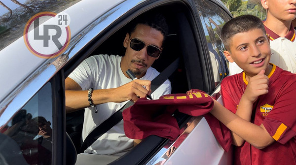 Silenzio (inevitabile) del giocatore mentre firmava autografi ai romanisti.
