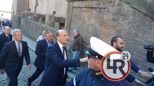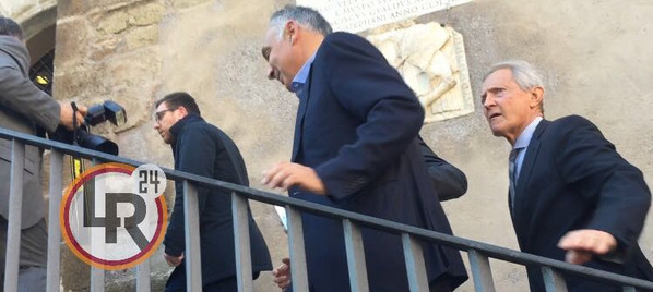 11.00 - Il presidente della Roma giunge in Campidoglio. Con lui anche il dg Baldissoni e l'ad Gandini. Alla domanda su come stava, Pallotta ha dato a un cronista il foglietto illustrativo di un farmaco contro la febbre che sta prendendo. Presenti per il Comune Raggi, Bergamo, Montuori, Mazzillo e De Vita.