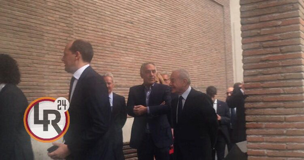 18.18 - Arriva il presidente della Roma Pallotta accompagnato dal dg Baldissoni e dall'ad Gandini. All'ingresso stretta di mano con l'ex Sottosergretario alla presidenza del Consiglio dei Ministri Enrico Letta. Presente anche Fienga