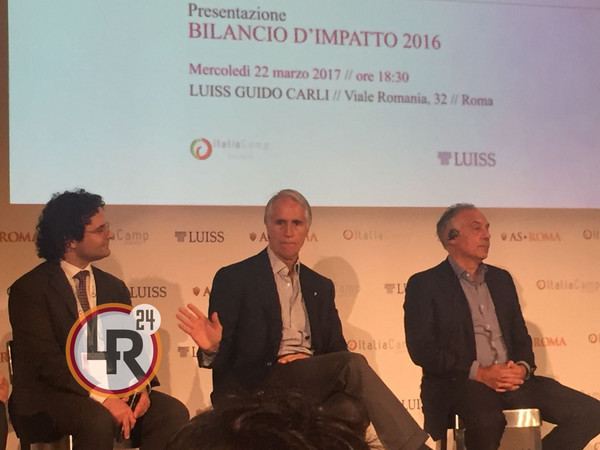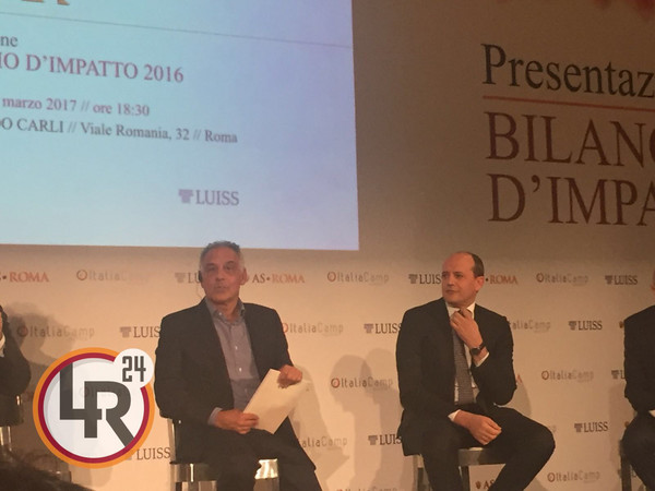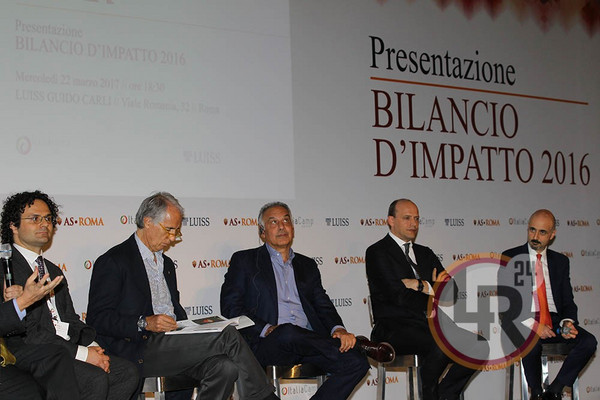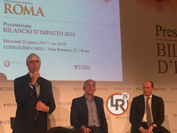 18.55 - Prende la parola Giovanni Fiori (Direttore Centro Interuniversitario di Ricerca Governance e Sustainability): "Sono emozionato, per noi è stata una sfida bellissima, che abbiamo accolto entusiasti. La Luiss da tempo è impegnata sul fronte della determinazione che si debba misurare non soltanto il valore economico, ma l’impatto delle aziende sulla società. Mi batto da anni per superare il limite della dottrina economica che vuole che le società siano solo un modo per far guadagnare gli azionisti Non tutto può essere misurato, molte variabili e molto impatti sono qualitativi, non misurabili, ma noi abbiamo voluto fare lo sforzo per misurarli. Abbiamo creato l’indicatore Ritorno d’Impatto. Questo progetto è all’inizio del suo cammino. Gli impatti misurati sono solo una parte, ci siamo concentrati su quattro aree importanti. Il valore del marchio della Roma. Questo dato è calcolabile. Il marchio della Roma ha avuto un incremento veloce nel tempo. La cosa più bella misurata è la seconda delle quattro aree misurate, quello che fa la Roma per i ragazzi, con scuole e scuole calcio. Alcuni ragazzi, senza l’assistenza della Roma, avrebbero una vita differente. Un ragazzo che studia e fa sport invece che stare per strada crea valore per tutta la società. Siamo arrivati ad un valore stimato di queste 4 aree limitate di 10-15 milioni di euro. E’ una sfida importante che vogliamo migliorare, ci sono tante informazioni importanti che ci mancano e che vogliamo aggiungere. La terza area è il rapporto dei tifosi. La Roma ha un bacino di tifosi importanti, tra le prime cinque d’Italia. L’educazione del tifoso ha un valore immenso, sono tutti asset che il bilancio economico e finanziario non può cogliere. Il grande ruolo che può svolgere la Roma è quello di ambasciatore per la città, la Roma calcio è conosciuta in tutto il mondo e può attrarre nuove risorse per la città e nuovi sviluppi per la città. Volevo segnalare che è urgente cominciare a pensare in modo differente, cioè misurare tutto ciò di positivo che le imprese generano. Andremo avanti in questo progetto grazie al sostegno della Roma, è una strada coraggiosa e che va contro molti paradigmi della scienza economica. Riusciremo a misurare tutto? Non credo. La passione, la voglia e l’entusiasmo non si possono misurare. Forse c'è riuscito Venditti nella sua canzone “Dimmi cos'è che mi fa sentì importante anche se non conto niente”. Grazie" .