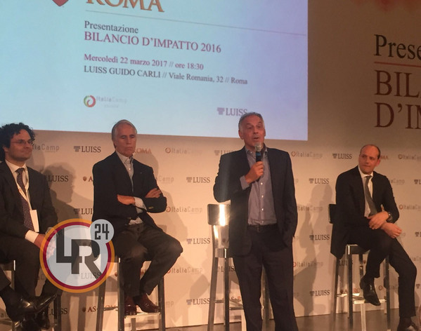 DALLA LUISS GUIDO CARLI EMANUELE ZOTTI - L'As Roma presenta quest'oggi il primo Bilancio di Impatto del Club, redatto da ItaliaCamp con il supporto del centro di ricerca LUISS Governance & Sustainability. All'evento, che inizierà alle ore 18.30 presso la sede dell’Università LUISS Guido Carli (aula 211), in Viale Romania 32, interverranno il Presidente dell’AS Roma James Pallotta e il Presidente del CONI Giovanni Malagò oltre a Giovanni Lo Storto, Direttore Generale LUISS, Mauro Baldissoni, Direttore Generale A.S. Roma, Giovanni Fiori, Direttore Centro Interuniversitario di Ricerca Governance & Sustainability e Fabrizio Sammarco, Amministratore Delegato ItaliaCamp Srl.