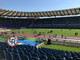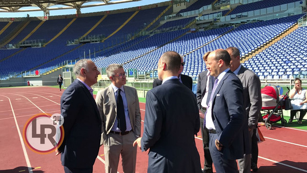 09.50 - Pallotta è arrivato all'Olimpico accompagnato dal dg Mauro Baldissoni. Il presidente giallorosso ha incontrato a bordocampo il presidente del Bologna Joey Saputo e l'ad rossoblu (ed ex dirigente giallorosso) Claudio Fenucci.