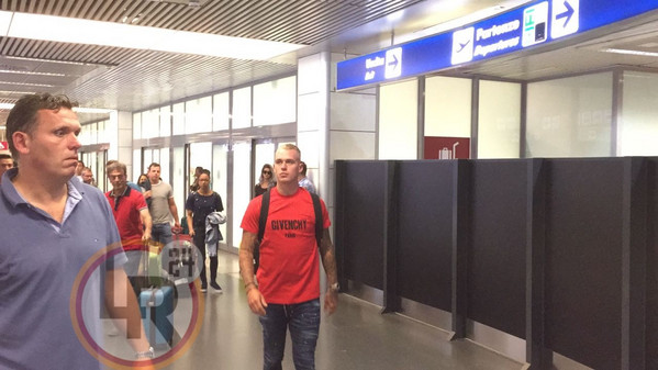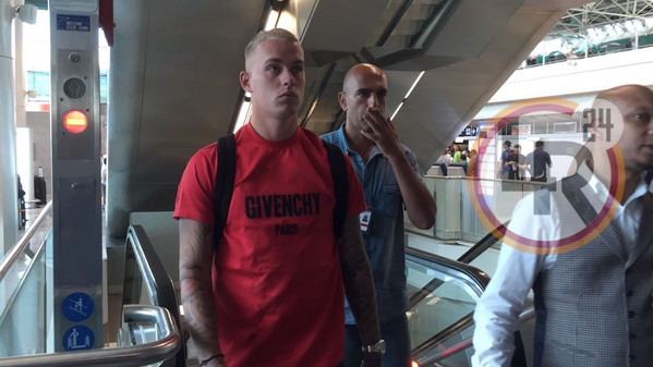 9.40 - All'uscita del Terminal 3 il terzino si è soffermato davanti a fotografi ed operatori tv e ha brevemente rilasciato una stringata dichiarazione ai cronisti presenti: "Sono contento di questa nuova esperienza. Forza Roma"