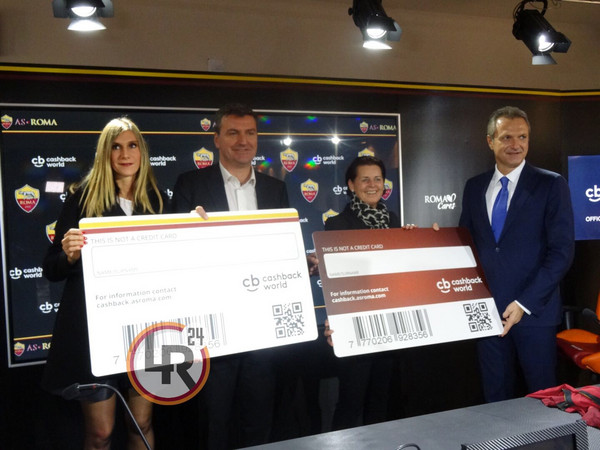 11.15 - Prende la parola Edoardo Moretti: "Cashback World è una piattaforma aperta e disponibile che fornisce vantaggi in cashback. Circuito di piccole-medie imprese offline e online. Il circuito è in continua crescita, ci sono già un milione di iscritti in Italia. Siamo felici che la Roma ci abbia dato fiducia, vogliamo dare vantaggi concreti ai tifosi della Roma. La piattaforma dedicata alla Roma è già online. E’ una card gratuita. Siamo presenti in 47 nazioni, ma siamo in grande crescita a Roma e nel Lazio. E’ importante che il club abbia deciso di destinare una quota a Roma Cares. Siamo fieri di partecipare come sponsor e come partner a questo progetto della Roma, ringrazio della fiducia che ci viene data da tutti gli iscritti, ci auguriamo che i tifosi riescano ad avere vantaggi concreti usando la card, anche biglietti gratuiti o abbonamenti gratuiti nel lungo periodo".