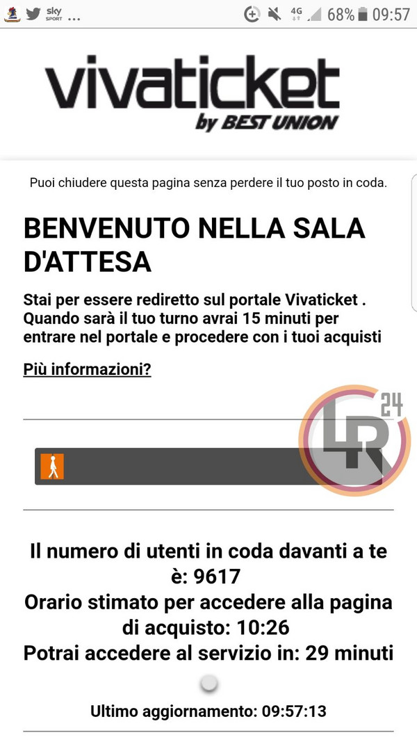 /p>18.00 - Stavolta il sold out è arrivato. Terminati anche gli ultimi biglietti negli store. Venduti 55 mila tagliandi
