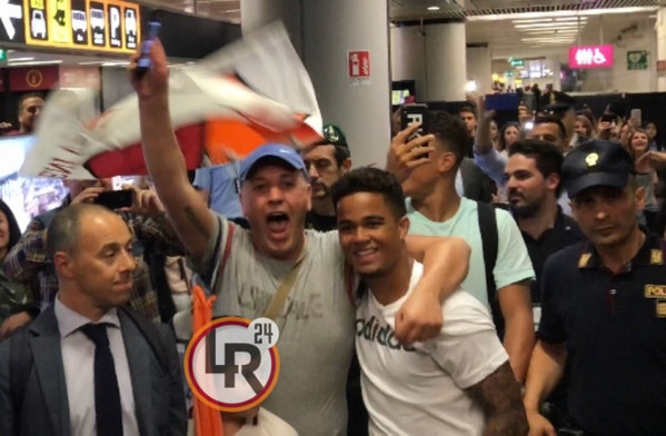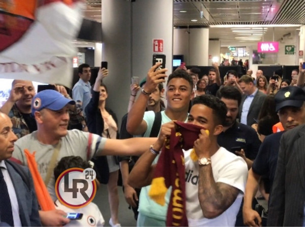 23.36 - Kluivert è uscito dal terminal 3, accolto da un vero e proprio bagno di folla. Durante il tragitto verso l'uscita l'olandese ha baciato lo stemma della Roma sulla sciarpa che aveva al collo.