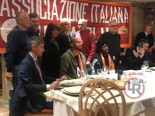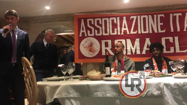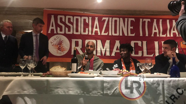 DAL PARK HOTEL MANCINI EMANUELE ZOTTI - Steven Nzonzi e William Bianda incontrano i tifosi. Il centrocampista francese e il difensore della Primavera giallorossa sono gli ospiti della cena conviviale organizzata dall'AIRC, l'Associazione Italia Roma Club, che anche stavolta si terrà presso il Park Hotel Mancini, nella zona sud della Capitale. Con i giocatori è presente anche il dirigente Frederic Massara.