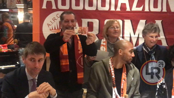 Arrivano le parole di Nzonzi, con Massara a tradurle: "Sono molto contento di essere qui con voi e di aver raccolto tutto il vostro affetto. Forza Roma".