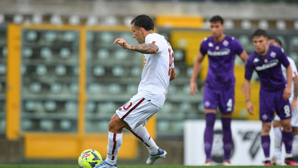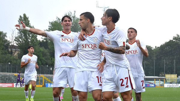 19' - Accorcia le distanze la Fiorentina, che va a segno con il colpo di testa di Distefano, lasciato solo in area: Fiorentina 1-2 Roma.