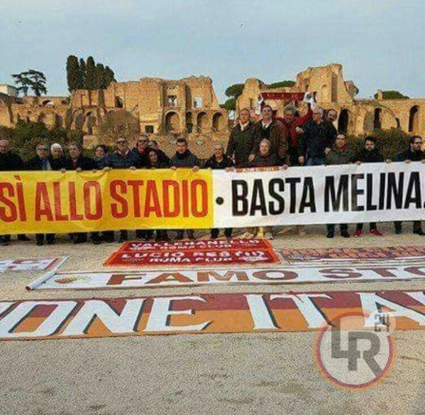 "Siamo qui a tifare per Roma, per la nostra Capitale! In quella che potremmo definire la Tor di Valle dell'Antichita'. Vogliamo ricordare a chi governa e amministra - spiegano i manifestanti - che il loro compito e' tutelare i sogni e il futuro di una comunita' e oggi, a Roma, la costruzione dello stadio rappresenta proprio questo: una straordinaria possibilita' di rilancio dell'economia e dell'immagine della Capitale d'Italia, immobile da tempo. Riteniamo ignobile l'attacco mediatico, palese, violento, studiato ad arte, che sacche di potere stanno sferrando contro il progetto, proprio mentre il tavolo tecnico tra la Societa' e il Comune stava giungendo ad un accordo? La barzelletta della tribuna di Tor di Valle sta ridicolizzando la citta' e il paese tutto".