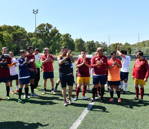 Una festa nella festa, una partita speciale nell’ambito di Soccerlandia 2017 dove in campo sono scesi Vincent Candela, Giuseppe Giannini, Max Tonetto, Pluto Aldair, Giampaolo Di Magno, Riccardo Totti, l’attore Edoardo Leo, tutti con indosso una maglia di Francesco Totti. Tante casacche della Roma, ma anche della nazionale, a rappresentare i 25 anni di carriera del capitano giallorosso. Ex giocatori della Roma si sono radunati ieri al centro sportivo Longarina per dar vita alla partita "Special Friends... teniamoci per mano", in collaborazione con Special Cup in programma ogni anno a Bellinzona. Assieme ai big del calcio anche i ragazzi del progetto “Diamo un calcio alla disabilità” della Totti Soccer School, dall’altra parte del campo i mister della società della Longarina e i ragazzi stessi, per la cronaca la partita è finita in parità 2-2 con una rete sul finale di Riccardo Albensi del progetto a siglare il definitivo pari. Al termine del match ben 17 società del Lazio (Csl Soccer, Sc Cervaro, La Salle, Civitavecchia Calcio, Tivoli Calcio, Cs Italia, Athletic Soccer Academy, SS Lazio, As Roma, TC Garden, Nuova Monterosi Calcio, RCC Tevere Remo, Mai Soli Onlus, Ass Domino, Integra Sport 2013, Albano Primavera e la Totti S.S) hanno dato vita alla 10ma edizione di Soccerlandia, la grande festa del calcio.