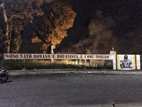 Sempre nella notte alcuni esponenti di Giovinezza, un gruppo della Curva Sud, hanno affisso sul ponte di via Anastasio II un altro striscione per onorare le 25 stagioni di Francesco Totti con la maglia della Roma: "25 d’amore… Rimani a Roma, ragiona cor core"