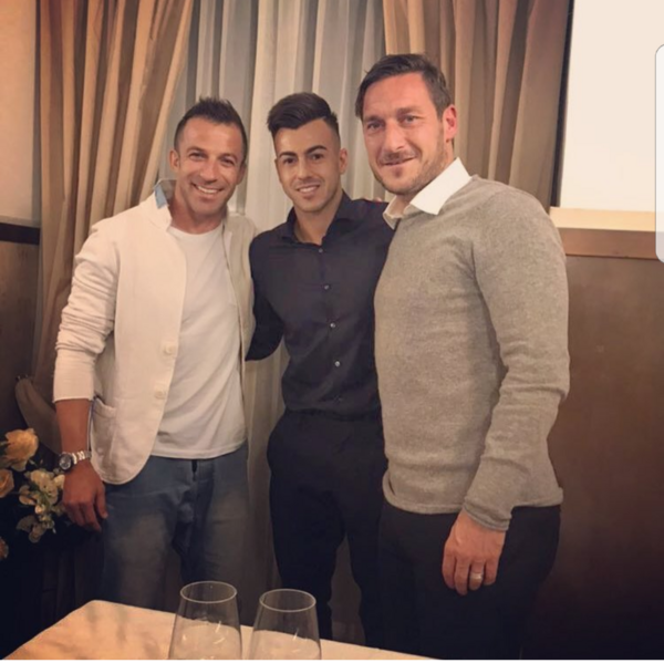 A tarda sera, dopo il fantastico gol di stasera che è valso i 3 punti alla Roma, Stephan El Shaarawy ha postato sul suo profilo Instagram una foto con due leggende. Francesco Totti e Alex Del Piero, che erano a cena nello stesso ristorante del 92 giallorosso.