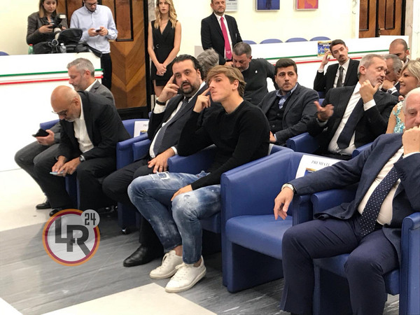 Si è tenuta oggi pomeriggio al Salone d'Onore del Coni la cerimonia del Premio di Cultura Sportiva Beppe Viola. Tra i premiati anche il centrocampista giallorosso, rivelazione della stagione della Roma, Nicolò Zaniolo, e il ct della Nazionale italiana, Roberto Mancini.