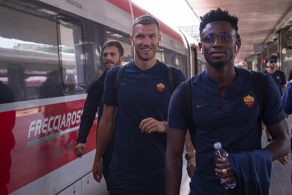 Prove generali per la Roma che oggi affronta l'Arezzo per l'ultimo test estivo prima dell'avvio del campionato fissato la settimana prossima all'Olimpico contro il Genoa. La formazione giallorossa, partita da Termini in mattinata, ha raggiunto Arezzo. Questi gli scatti, tra i sorrisi di Dzeko&Co, del viaggio: