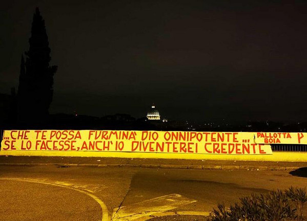 Nonostante la storia di James Pallotta come presidente della Roma sia con ogni probabilità arrivata agli sgoccioli continuano le dure contestazioni nei suoi confronti. Nella notte è apparso un nuovo, duro striscione diretto al magnate di Boston, in via Piccolomini a Roma: "Che ti possa fulminare Dio onnipotente. Se lo facesse anch'io diventerei credente"