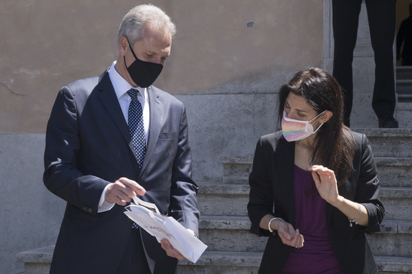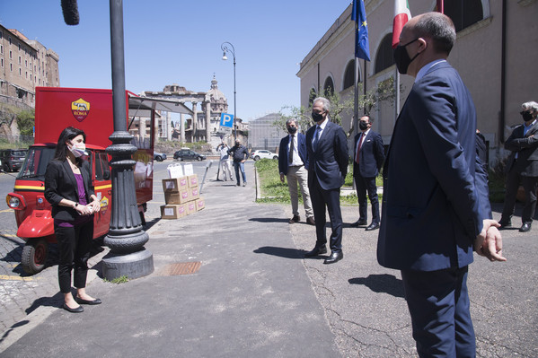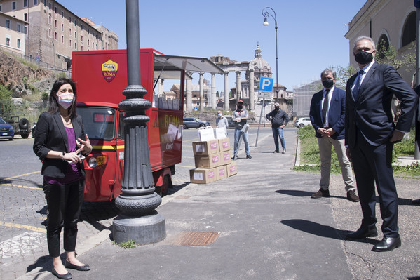 Nella mattinata di lunedì, il CEO Guido Fienga e il vicepresidente Mauro Baldissoni hanno consegnato simbolicamente alla sindaca Virginia Raggi un box contenente il materiale che Roma Cares ha già iniziato a distribuire alle categorie più a rischio.