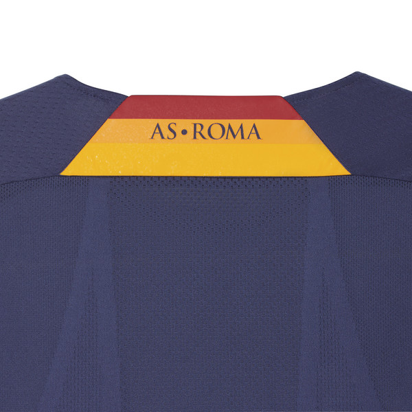 Il design in blu è arricchito da strisce orizzontali gialle e rosse, un colletto a girocollo e dettagli a costine gialle. A spiccare è il ritorno ufficiale del vecchio stemma con la scritta "Asr".