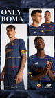 Questa mattina erano uscite delle indiscrezioni circa il terzo kit della Roma, color blu con righe giallo e rosse. Come ha confermato il club su Twitter e sul sito ufficiale, però, si tratta della quarta divisa da gioco, che è stata presentata ufficialmente. La scelta di svelare prima il quarto kit del terzo è legata al calendario delle prossime partite e alla conseguente combinazione di colori degli avversari: per questo la Roma ha colto l'opportunità di lanciare la quarta maglia prima del previsto e su un palcoscenico europeo.