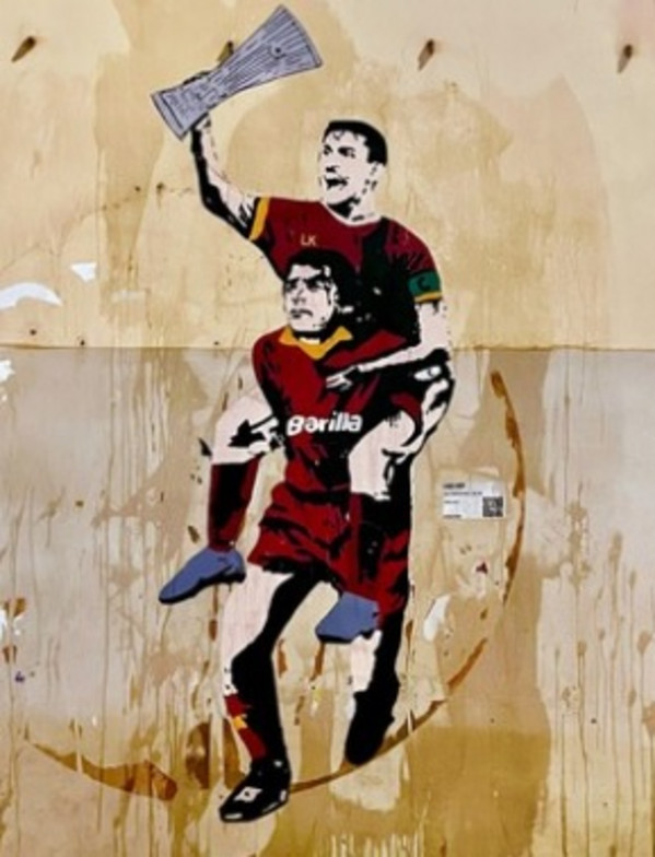 FOTO - Di Bartolomei porta in trionfo Pellegrini: l'opera dello street artist LAIKA