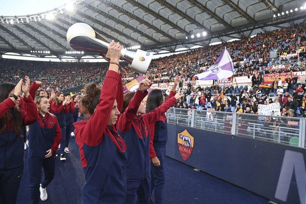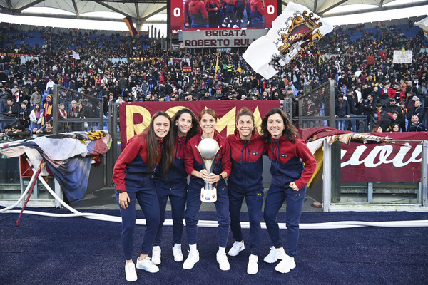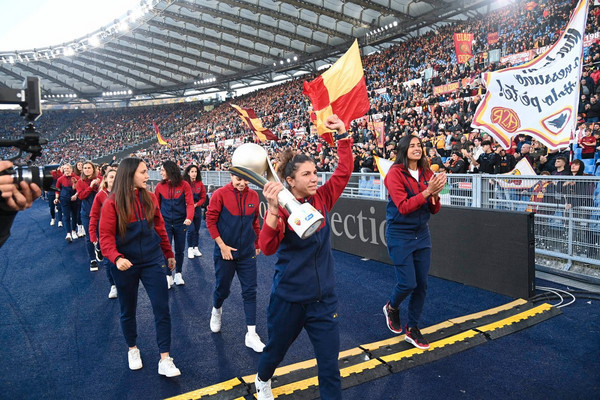 In occasione di Roma-Bologna, in scena alle 16.30 allo Stadio Olimpico, la Roma Femminile riceve l'abbraccio e l'applauso dei tifosi giallorossi: le ragazze di Alessandro Spugna sfilano con il trofeo della Supercoppa vinta lo scorso 5 novembre allo stadio Tardini di Parma battendo in finale, dopo i calci di rigore, la Juventus.