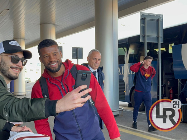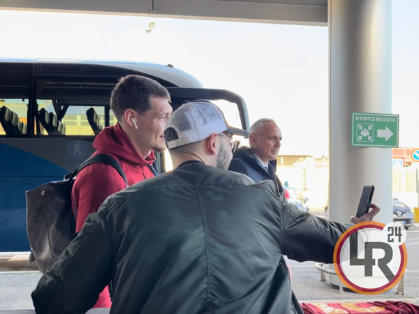 DA FIUMICINO ANNALISA FERRANTE - Dopo il passaggio del turno in Europa League, dove affronterà negli ottavi di finale la Real Sociedad, domani la Roma è attesa in trasferta dalla Cremonese nella 24esima giornata di campionato. Alla vigilia della sfida, dopo la seduta di rifinitura mattutina a Trigoria, la Roma parte per raggiungere Cremona: tutti a disposizione di Mourinho, tranne lo squalificato Smalling. All'aeroporto di Fiumicino sono presenti anche circa una ventina di tifosi, che hanno scattato delle foto con Wijnaldum, Dybala, El Shaarawy e Belotti.