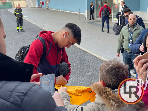 Fiumicino: Roma in partenza per Cremona. Foto e autografi con i tifosi per Dybala e Wijnaldum (FOTO e VIDEO)