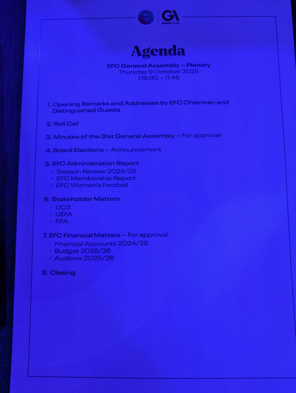 10:20 - Gualtieri, nel suo intervento, ha parlato anche dello stadio della Roma: "La EFC mette i tifosi al centro della scena, è una questione che a Roma conosciamo bene. Vogliamo migliorare gli stadi e gli impianti. Insieme con i due principali club della città stiamo lavorando per questo. Vorrei sottolineare l'impegno dell'Italia nell'EFC ci sono 38 dub tra maschili e femminile. Questa assemblea rappresenta un momento importante e celebra il calcio in ogni sua forma. Roma deve condividere questa transizione, in questa citta lo sport rappresenta comunità e voglia di stare insieme. È cosi da migliaia di armi: dalle feste romane fino alle manifestazioni sportive come le Olimpiadi e i Mondiali. Questo continuerà nel futuro. Siamo all'ultima tappa del nuovo stadio della Roma,sarà uno dei più belli del mondo portando con se un'intera riqualificazione urbanistica creando delle zone verdi per i cittadini e impianti sportivi. Roma è una citta che parla al mondo, mi auguro che questo incontro possa creare un nuovo inizio per il calcio europeo".