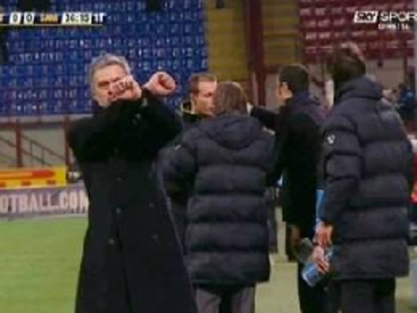 È stato convulso il finale di primo tempo di Inter-Sampdoria, con l'allenatore nerazzurro Josè Mourinho che a favore di telecamere ha incrociato i polsi mimando le manette dopo che l'arbitro aveva espulso Samuel e ammonito Cordoba e poco prima che il difensore colombiano rimediasse il secondo cartellino giallo lasciando i suoi in 9.