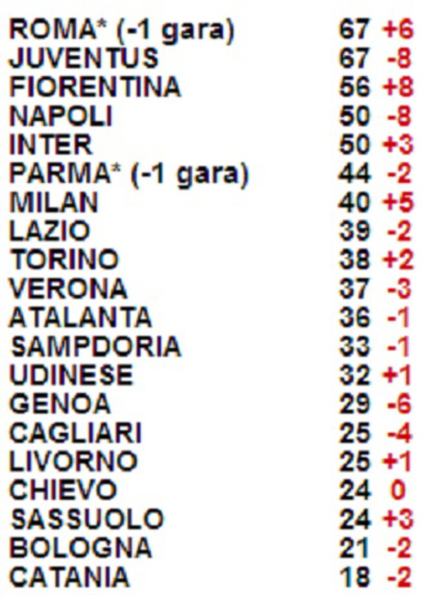 PANORAMA.IT - Continua lo speciale che dopo le giornate di Serie A stila la classifica del campionato al netto degli errori arbitrali. In testa la Roma (67 punti, 6 in più degli attuali) raggiungerebbe la Juventus, con i bianconeri che ne perderebbero otto. Anche il Napoli retrocederebbe alla quarta posizione, in funzione degli otto punti guadagnati, secondo il portale web, grazie agli errori arbitrali.