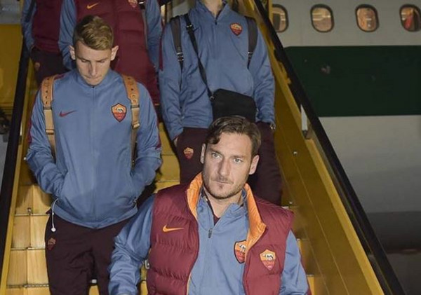 La Roma è atterrata all'aeroporto di Torino, dove domani sera affronterà la Juventus allo Stadium. A comunicarlo è stato il club giallorosso tramite il proprio profilo ufficiale Instagram, pubblicando una foto dei giocatori che scendono dall'aereo. In prima fila, tra loro, il capitano Francesco Totti