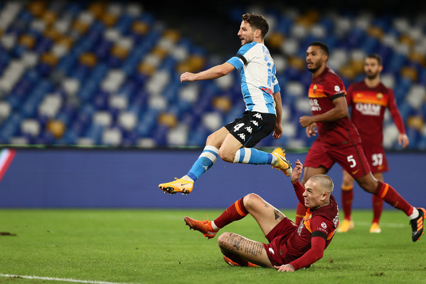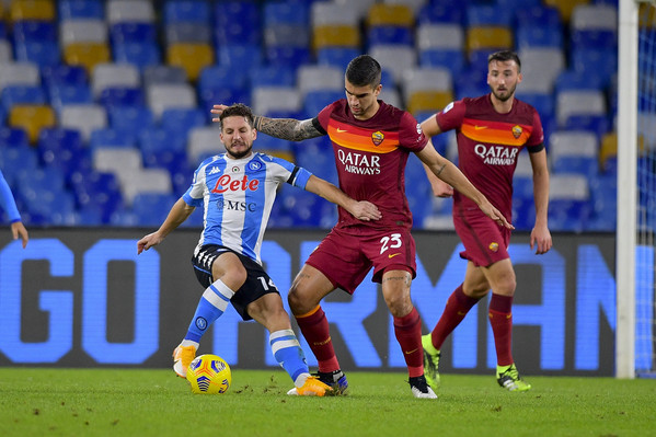 Da dimenticare la nona giornata di Serie A per la Roma, che si infrange sul Napoli di Gattuso: 4 gol rispettivamente di Insigne, Fabian Ruiz, Mertens e Politano spezzano il periodo di imbattibilità sul campo in campionato della squadra di Fonseca, che durava ormai da 16 turni. Brutte notizie anche in vista dei prossimi impegni: la Roma perde infatti Mancini e Veretout per infortunio. Di seguito gli scatti relativi al match.