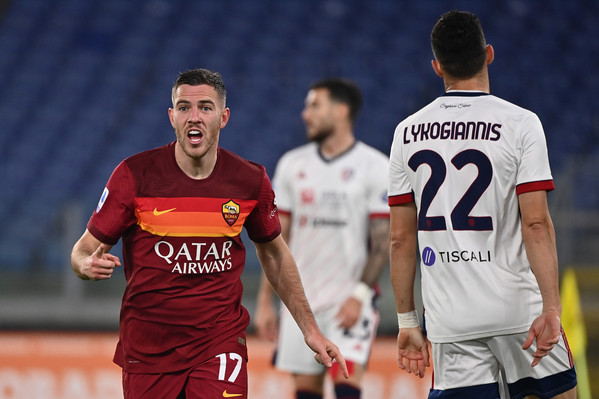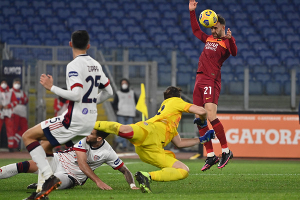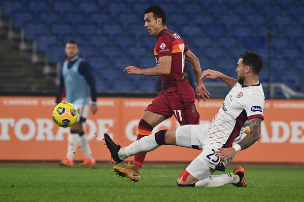 LAROMA24.IT - Chiamata a reagire dopo il ko di Bergamo, la Roma chiude il 2020 col Cagliari. All'Olimpico, contro l'ex Di Francesco, i giallorossi si impongono per 3-2. Apre le danze la rete di Veretout all'11', ma la Roma si fa rimontare nel secondo tempo con un tiro angolato di Joao Pedro. Gli uomini di Fonseca non si arrendono e tornano in vantaggio con Dzeko, prima di andare ancora a segno con una capocciata di Mancini. C'è tempo per un altro gol della squadra ospite, che trasforma un tiro dal dischetto - fallo di Villar - ancora con Joao Pedro. Questi gli scatti della partita