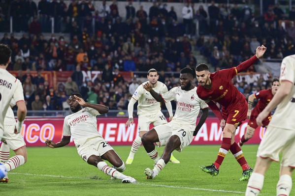 Ammonizioni: Zaniolo (R); Karsdorp (R); Ibrahimovic (M); Theo Hernandez (M); Mancini (R); Tomori (M); Kessie (M); Veretout (M).