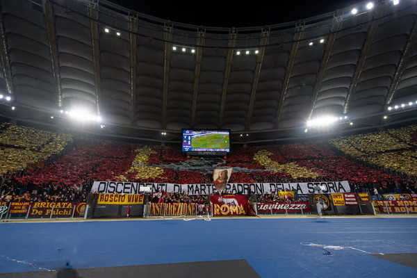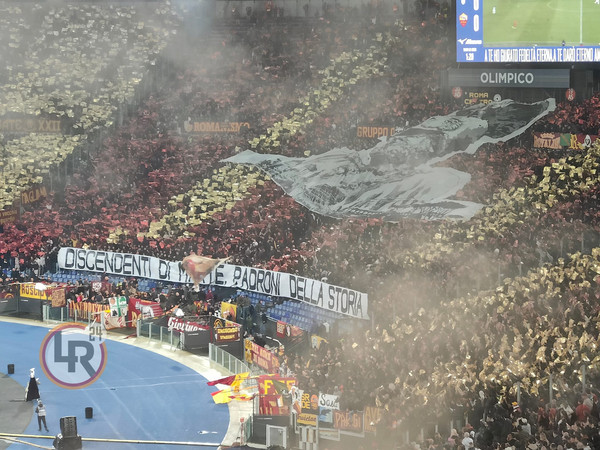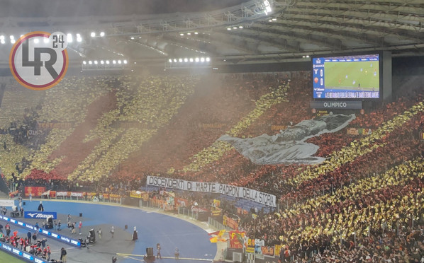 Oggi alle ore 18 andrà in scena Lazio-Roma, derby valido per la dodicesima giornata di Serie A. C’è un’atmosfera caldissima allo Stadio Olimpico e poco prima del fischio d’inizio le due tifoserie hanno esposto le rispettive coreografie. "Discendenti di Marte, padroni della storia", la scritta che figura nello striscione mostrato dalla Curva Sud, decorata con dei cartoncini giallorossi.