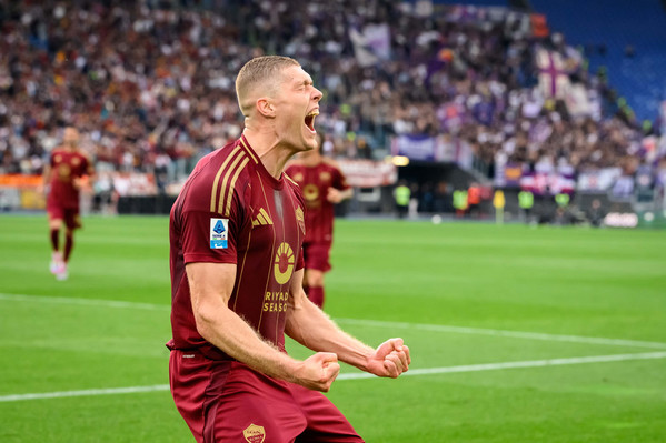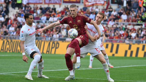 Vince ancora la Roma. Dopo il successo contro l'Inter, all'Olimpico i giallorossi battono 1-0 la Fiorentina nella 35esima giornata di campionato e si portano a 63 punti in classifica, al 4° posto, in attesa di Bologna-Juventus. La Roma parte forte e crea subito una grande occasione con Dovbyk, che temporeggia troppo sul bel filtrante di Cristante e viene murato dalla scivolata di Comuzzo. In seguito a una fase di stallo è la Viola a spaventare i giallorossi con una doppia occasione di Kean, ma il centravanti si fa sempre ipnotizzare da un grande Svilar. Successivamente si affaccia in avanti la Roma con una potente conclusione di Celik respinta in angolo da de Gea. A fine primo tempo la Roma alza i giri del motore e prima va vicina al gol con una conclusione di controbalzo di Shomurodov (parata da de Gea) e poi trova la rete dell’1-0 con Dovbyk all’ultima azione della prima frazione di gioco: Angelino scodella al centro, Shomurodov fa la sponda di testa e Artem non sbaglia da due passi. Nella ripresa la Fiorentina spinge alla ricerca del pari ma per ben due volte Svilar sbarra la porta e mantiene invariato il risultato. Gli scatti del match: