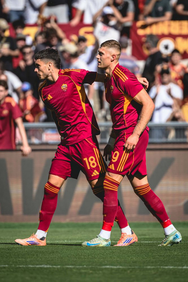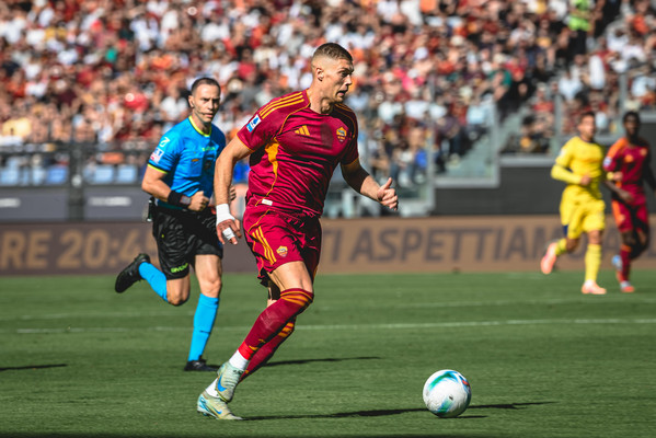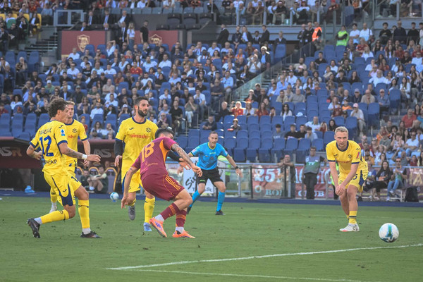 La Roma batte 2-0 l'Hellas Verona all'Olimpico. A sbloccare il risultato è Artem Dovbyk, che dopo appena sette minuti di testa insacca il gol del vantaggio. La reazione del Verona non si fa attendere, ma prima un super Svilar e poi una clamorosa traversa a porta completamente vuota negano il pareggio a Orban. Nella ripresa, la Roma controlla e, dopo un'altra grande parata di Svilar, trova il gol della sicurezza al 79' con una bella azione finalizzata da Matías Soulé. Nel finale c'è spazio anche per l'esordio di Jan Ziolkowski. In pieno recupero, annullato un gol di Orban che tocca il pallone con l'avambraccio. Ecco gli scatti più belli della vittoria giallorossa:
