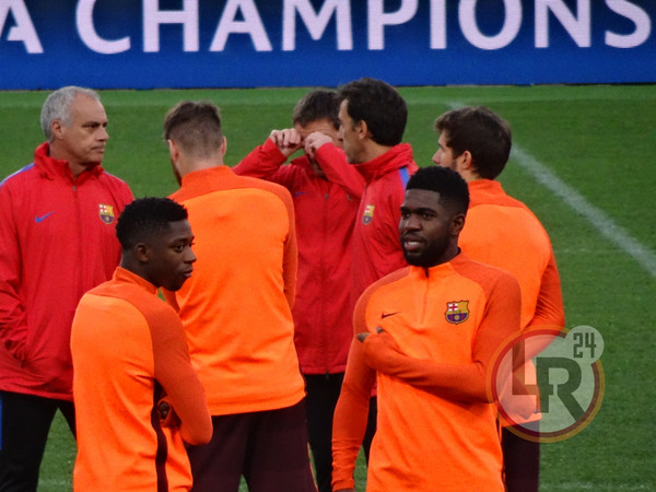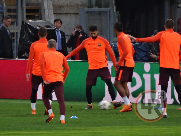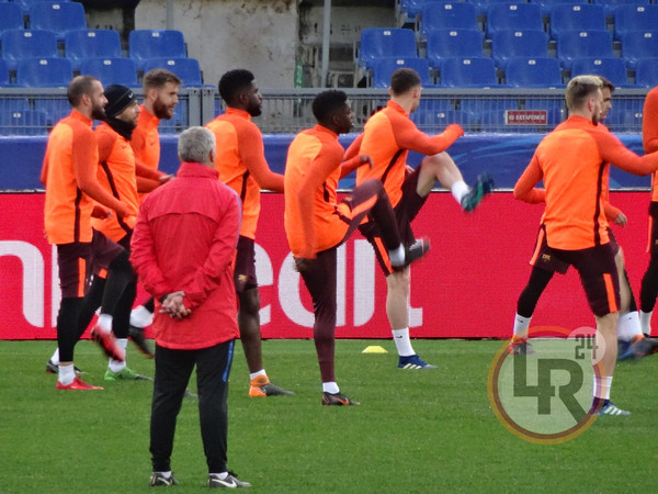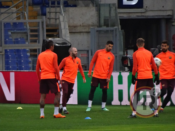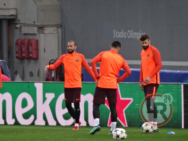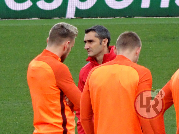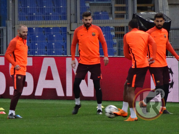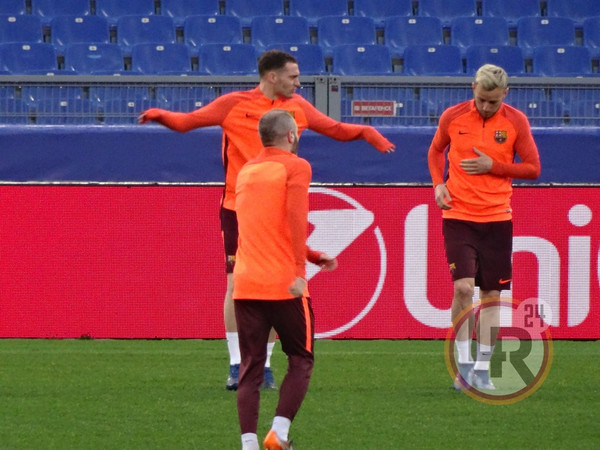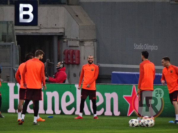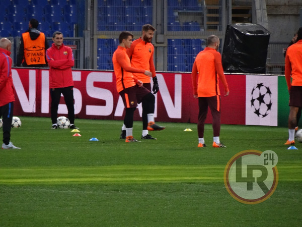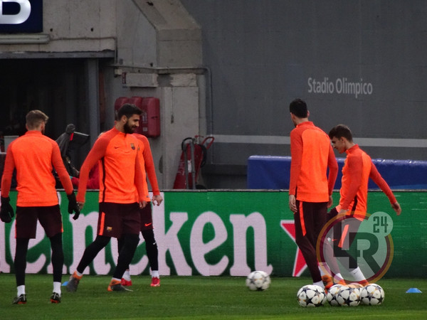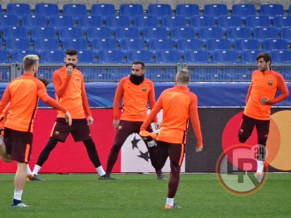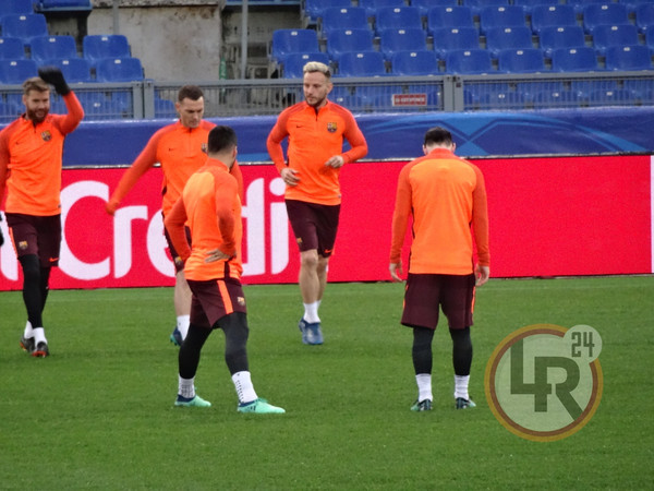 Subito dopo la conferenza stampa di Valverde, accompagnato da Ter Stegen, il Barcellona è sceso in campo all'Olimpico per svolgere la consueta rifinitura in vista del match contro la Roma. Si è allenato regolarmente Sergi Busquets, reduce da un problema al piede e dalla mancata convocazione nell'ultima gara contro il Leganes.