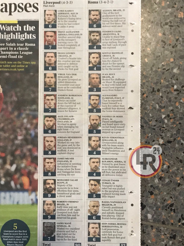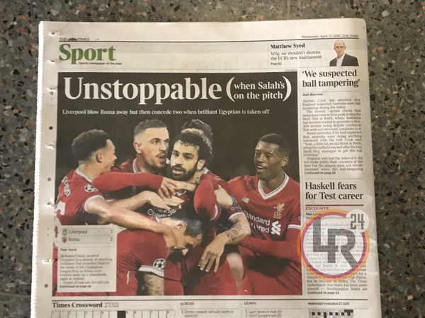 /p>Ma gli elogi sperticati per l'ex giallorosso travalicano i confini britannici: in Spagna 'Mundo Deportivo' apre con «Futbol Salah, una grande partita del mago egiziano», mentre 'Marca' lo definisce «Abbagliante» e 'AS', l'altro quotidiano sportivo spagnolo scrive che «Salah obbliga adesso la Roma a una nuova rimonta». «Salah, un anno incredibile», è il titolo scelto dalla 'L'Equipe': «Due gol, due assist: Salah conferma di stare vivendo sopra una nuvola» e France Football rincara gli elogi: «Un Salah in stato di grazia: è stato l'egiziano il protagonista principale del successo del Liverpool sulla Roma. L'attaccante egiziano ha confermato la sua forma eccezionale con due magnifici gol e due assist. Una partita straordinaria».