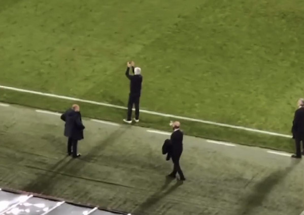 Un saluto e un lungo applauso. Così José Mourinho ha risposto ai cori provenienti dal settore ospiti della Reale Arena di San Sebastian, occupato dai tifosi giallorossi, che hanno intonato cori nei confronti dello Special One al termine dei 90 minuti. Il portoghese è rientrato così sul terreno di gioco per ringraziare i sostenitori della Roma, al termine del match pareggiato 0-0 in casa della Real Sociedad, valso la qualificazione ai quarti di finale di Europa League in virtù della vittoria per 2-0 dell'andata.