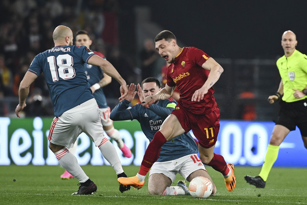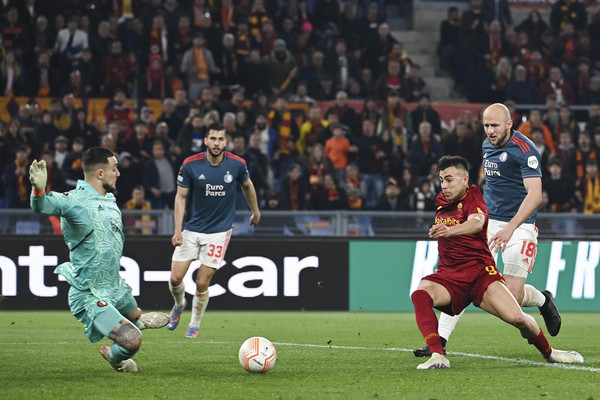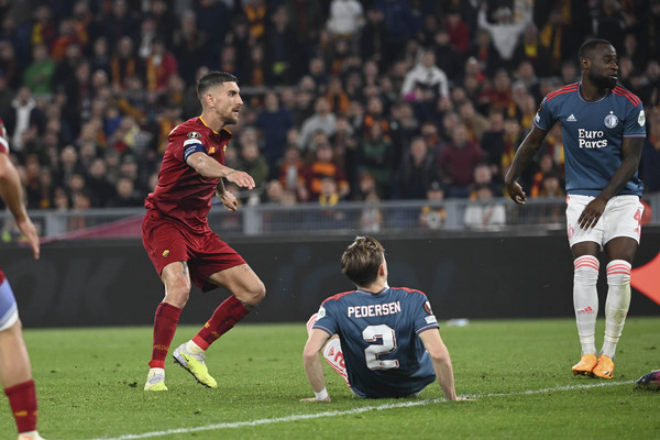 La Roma batte 4-1 il Feyenoord dopo i tempi supplementari e si qualifica alle semifinali di Europa League, dove affronterà il Bayer Leverkusen, vittorioso nel doppio confronto con l'Union Saint-Gillois. I giallorossi passano in vantaggio al 60' con Leonardo Spinazzola, ma vengono ripresi all'80' da Paixao, tornando sotto nel computo totale. All'89, però, il neoentrato Paulo Dybala riporta in vantaggio i giallorossi e pareggia la doppia sfida, che va avanti ai supplementari. Nell'extra time la Roma segna altri due gol, con Stephan El Shaarawy al 101' e Lorenzo Pellegrini al 109', centrando così la qualificazione.