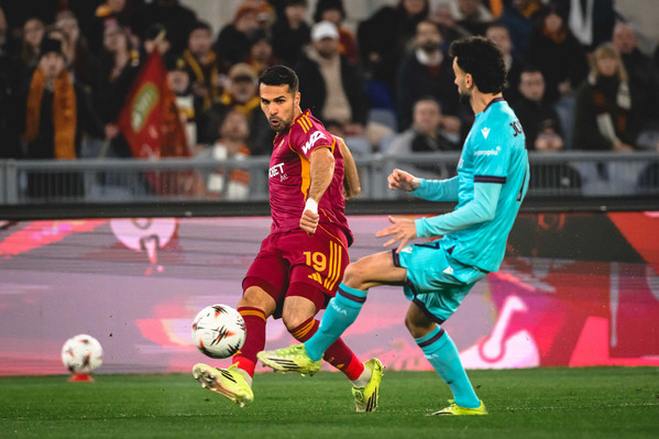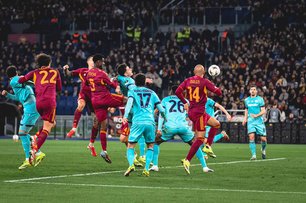 Allo Stadio Olimpico sta andando in scena l'attesissimo derby italiano tra Roma e Bologna, valido per il ritorno degli ottavi di finale di Europa League, e dopo 90 minuti il risultato è inchiodato su un clamoroso 3-3. Gli ospiti passano in vantaggio al minuto 22 con un super gol di Rowe, il quale buca Svilar con una potente conclusione di destro da fuori area. La gioia degli uomini di Italiano dura appena dieci minuti: Pellegrini colpisce il palo con una splendida punizione, ma dal corner seguente nasce il gol del pareggio grazie alla pennellata del numero 7 e all'incornata di Ndicka, ancora una volta in versione goleador. Quando il primo tempo sembra ormai giunto al termine, Zortea (bravo a prendere posizione) viene steso in area da El Shaarawy e l'arbitro assegna il rigore: dal dischetto si presenta Bernardeschi, che spiazza Svilar e porta nuovamente in vantaggio il Bologna al secondo minuto di recupero. Terminati 1-2 i primi 45’, nella ripresa la Roma parte bene e ha una doppia chance con Malen, ma la prima conclusione viene respinta da Ravaglia e la seconda finisce sopra la traversa. Al minuto 58 i giallorossi si complicano la vita e regalano un altro gol al Bologna: disastro difensivo di Cristante e Ndicka, Castro ne approfitta e con un destro potentissimo segna la rete del tris. La Roma accusa il colpo, ma al 69’ arriva la reazione: Freuler stende Vaz in area, l’arbitro assegna il rigore e Malen - glaciale - batte Ravaglia riaprendo la partita. Pochissimi minuti dopo i giallorossi hanno anche l’occasione di pareggiare, ma Ravaglia compie un grande intervento sulla punizione di Pellegrini. L’Olimpico è incandescente e la Roma, trascinata dal pubblico, trova la forza di segnare il 3-3: Vaz scappa a Lucumi e crossa basso per Pellegrini, il quale prende la mira con il sinistro e buca Ravaglia con un tiro a giro. I tempi regolamentari terminano quindi in pareggio e ora iniziano i supplementari. Dopo un primo tempo di extra time senza sussulti, al minuto 110' la rete di Cambiaghi che manda il Bologna ai quarti di finale di Europa League per il 3-4 finale. Ecco i migliori scatti del match.