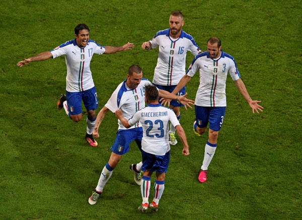 ITALIA: Buffon; Barzagli, Bonucci, Chiellini; Candreva, Parolo, De Rossi, Giaccherini, Darmian; Eder, Pellè.