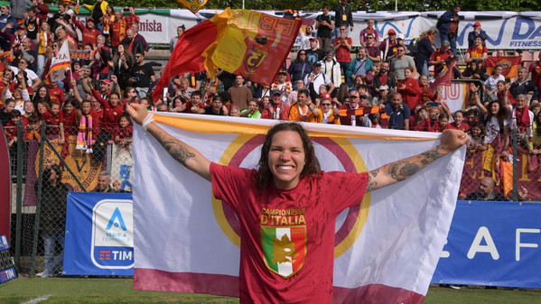 La Roma Femminile vince il primo scudetto della sua storia! Le ragazze di Alessandro Spugna battono la Fiorentina per 2-1 allo Stadio Tre Fontane e a quattro giornate dal termine della poule scudetto si aggiudicano il titolo di campionesse d'Italia. Dopo una cavalcata meravigliosa in campionato, arricchita anche dal percorso in Champions League, la Roma oggi raggiunge questo storico traguardo: in gol per la Roma Greggi nel primo tempo e capitan Bartoli nella ripresa.