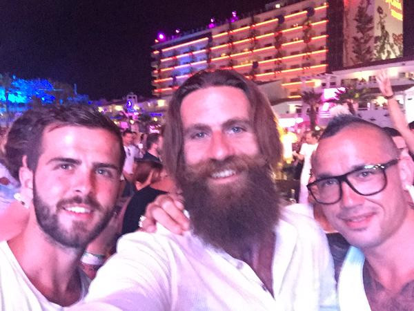 Ancora in vacanza a Ibiza, Radja Nainggolan e Miralem Pjanic ieri hanno festeggiato il compleanno della moglie del belga, Claudia, e nella notte hanno incontrato in un noto locale delle baleari Davide Moscardelli, attaccante del Lecce e noto tifoso della Roma, che su twitter ha postato la foto in compagnia dei due centrocampisti, accompagnata da questo messaggio: "Grazie fratello Nainggolan. Mi raccomando Pjanic ci vediamo a Roma!!!".